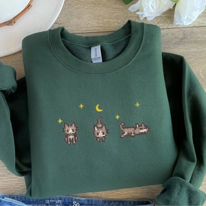 Embroidered Cute Cat Sweatshirt, Valentines Day Cat Shirt, Embroidered Cat Mama Hoodie, Cute Valentines Day Sweater, Valentines Day Meow Tee
